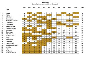 Mentions also go to Stars of the Sea, The Dirty Ruckers, and Harmerang for completing the list of the top-ten teams.