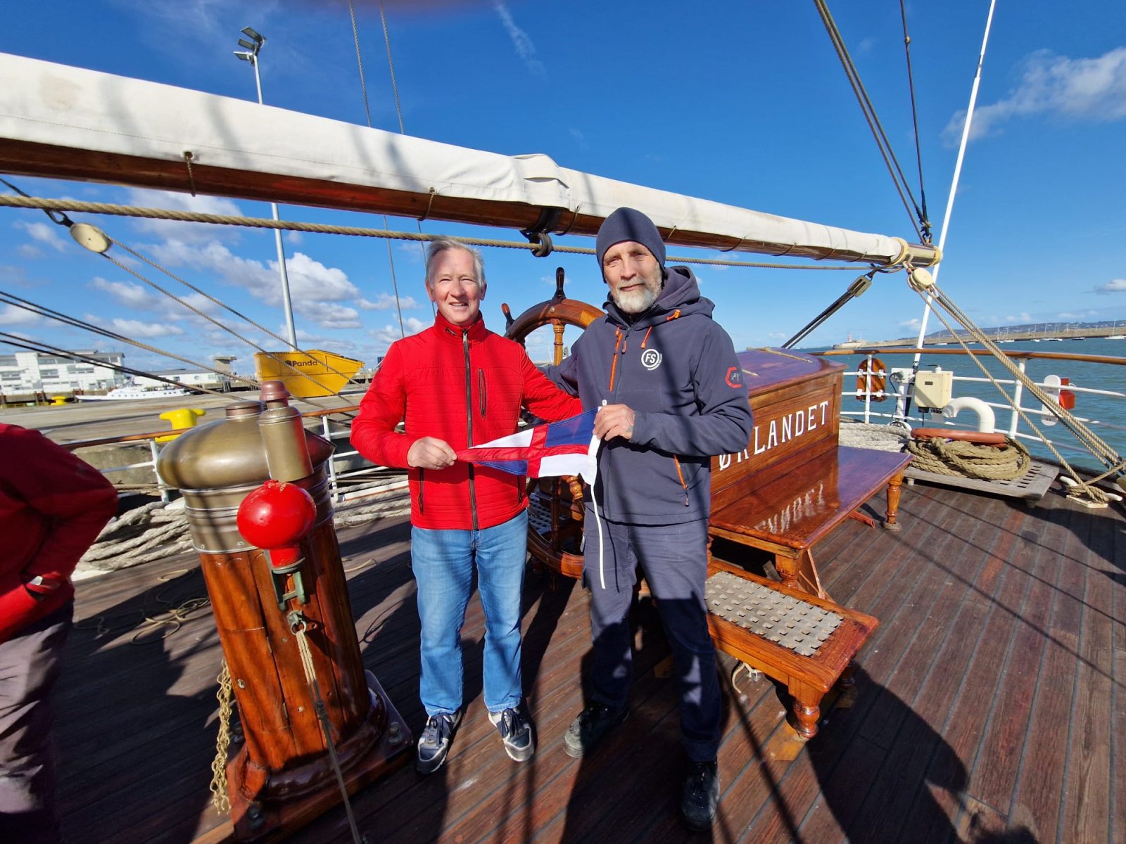 Upon approach by our Commodore, Peter Sherry, Captain Ulf Hed of the Sørlandet warmly welcomed the fleet aboard, offering them a brief but fascinating tour of the ship. Members learned that the Sørlandet is the world’s oldest and most authentic fully-rigged ship still in active service. Built in Kristiansand, Norway, in 1927, the ship was originally used to train young people for the merchant marine. However, as the need for traditional seaman training declined in the 1970s, the ship opened its doors to the general public, offering training voyages to people of all ages and backgrounds.