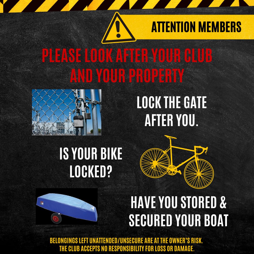 We ask all members to please be mindful of your belongings and property around the club and boat yard.