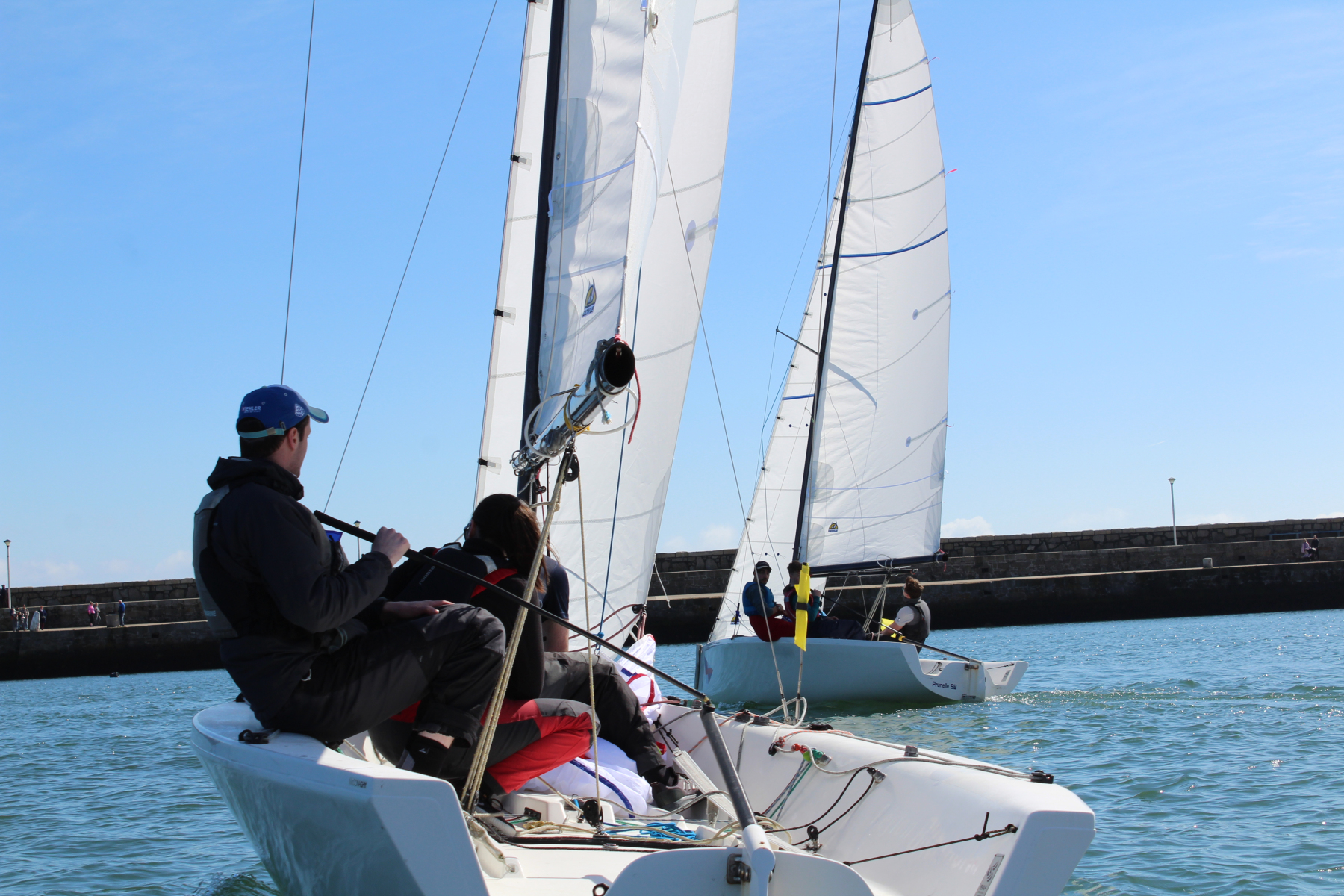 manoeuvred themselves in order for them to be the first to turn back to the start line, allowing them to go on to win the second match. In match three UCD 2 were able to best QUB once again, match point. In match four UCD 2 started in a favourable position tight to leeward of QUB, forcing them to tack off to the lighter right side of the course. This proved to be decisive with UCD 2 remaining narrowly ahead of QUB for the remainder of the race and ultimately going on to win the race and the event.