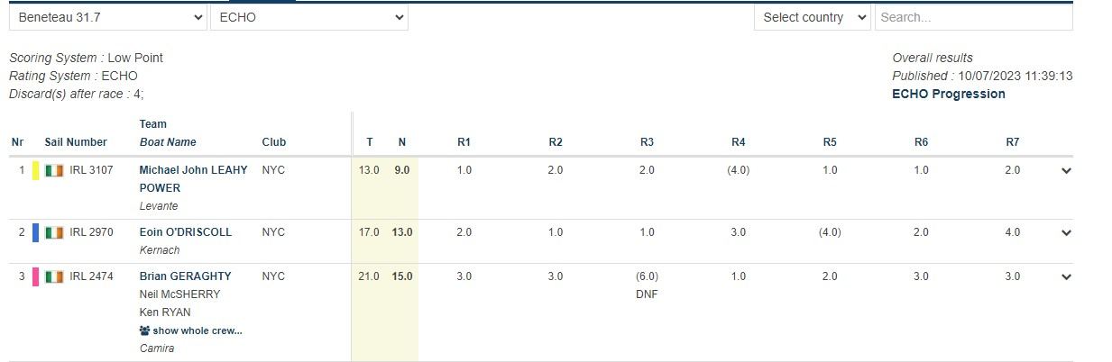 Congratulations to all the NYC crews that competed in such challenging conditions.  Hats off to our NYC winners Chris Johnston, Shane McCarthy, Johnnie Phillips and John Masterson and well done to all other teams who were to the fore in their respective fleets.